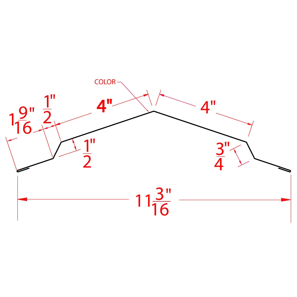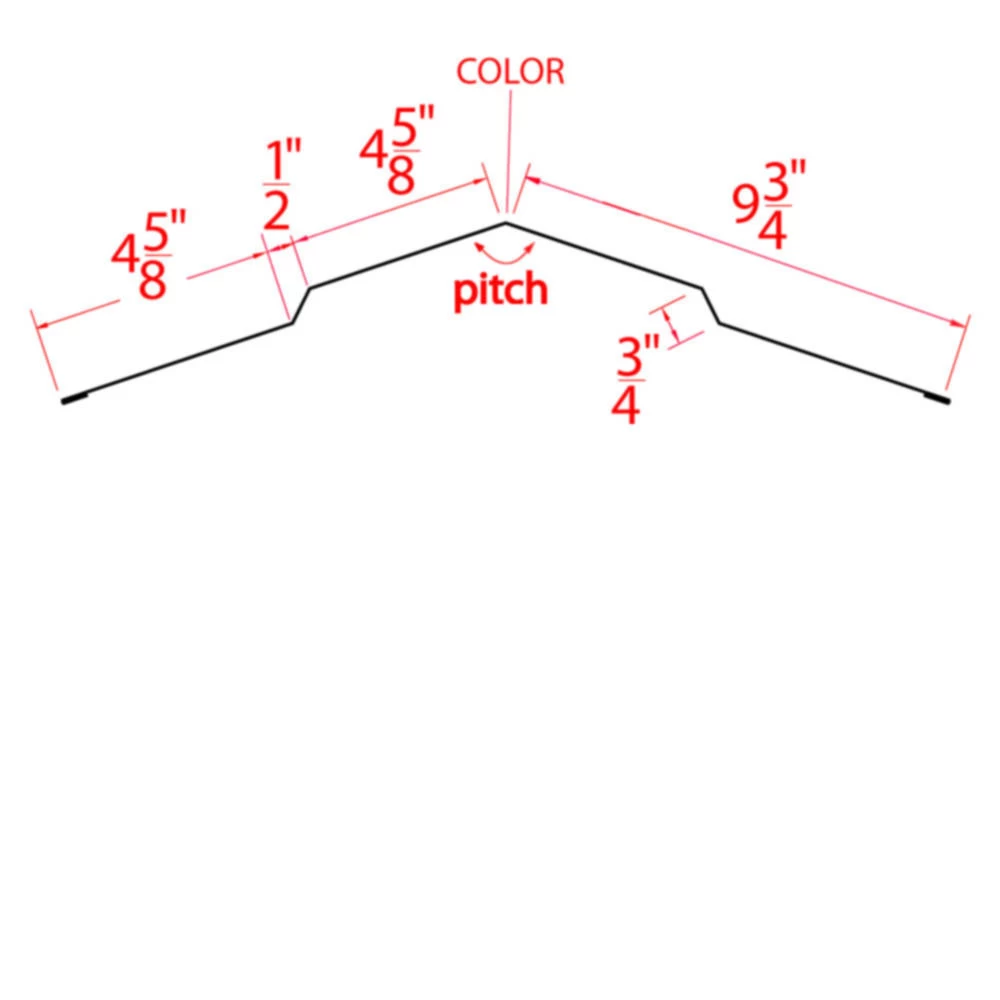 Hi-Rib Ridge Cap Trim in 26G steel designed for roofline ridge. For use with PBR Hi-Rib panel profiles. Specify roof pitch when ordering. Lo-Rib Ridge Cap Trim in 29G steel designed for use with Nu-Mag and Nu-Ag Lo-Rib panel profiles. Used along the roof ridge line.