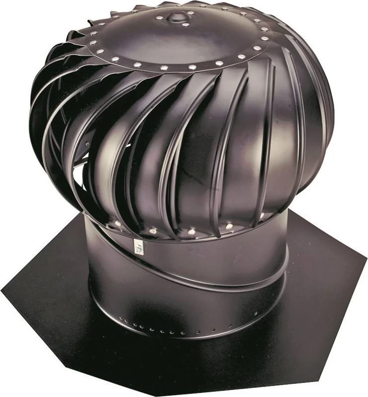 Permanently lubricated upper and lower ball bearing system that ensures long life and no maintenance; all-aluminum rust free construction; exclusive vari-pitch base adjusts to 12/12 roof pitch; tested to withstand winds of 110 MPH. Easy installation and reduces winter ice buildup. BIB12 Dade County Approved 11-0802.11. BIB14 Miami Dade County Approved 10-0928.05. BIB12 features a 20 in x 20 in base and 17-1/4 in height. BIB14 features a 22 in x 22 in base and 20 in height. Turbines are exhaust vents