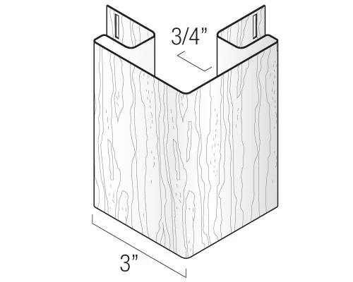 Corner piece with two 3 faces and two 3/4 wide channels to insert siding.