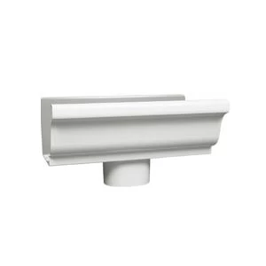 - 5 in white aluminum end with a 3 in x 4 in outlet connects your horizontal gutter to the vertical part of the gutter system