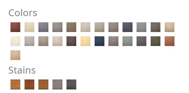 | Color Options | Autumn Red, Desert Tan, Flagstone, Granite Gray, Hearthstone, Linen, Natural Clay, Olive, Pacific Blue, Pewter, Sable Brown, Savannah Wicker, Snow, Sterling Gray, Taupe, Ashen, Bark, Caramelized Pears, Calvary, Cool Charcoal, Gray Heron, Knight’s Armour, Plunge Pool, Red Rock Falls, Rock Cliffs, Cedar, Mahogany, Maple, Slate, Cinder |