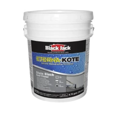 A premium stain blocking primer designed to coat over asphalt roofing products. This light gray base coat seals asphalt surfaces, so the top coating maintains color integrity and a brighter finish that delivers maximum reflectivity. Also, this high adhesion formula improves performance and coverage rates of roof coatings. Use prior to Black Jack ETERNA-KOTE Silicone or Black Jack White Elastomeric Roof Coatings. Waterbased technology is RainSafe in 2 hours, has low odor and easy cleanup.