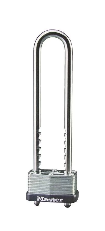 Removable adjustable length shackle adjusts from 2-3/4 in (7cm) to 5-3/8 in (14cm). Provides maximum application flexibility. 1-3/4 in (44mm) wide laminated steel body for superior strength. Steel shackle provides strong cut resistance. Single locking lever. Warded locking mechanism minimizes jamming from dirt and grime. Ideal for backpacks, duffel bags, sports bags, briefcases, bags, cabinets, tackle boxes etc.