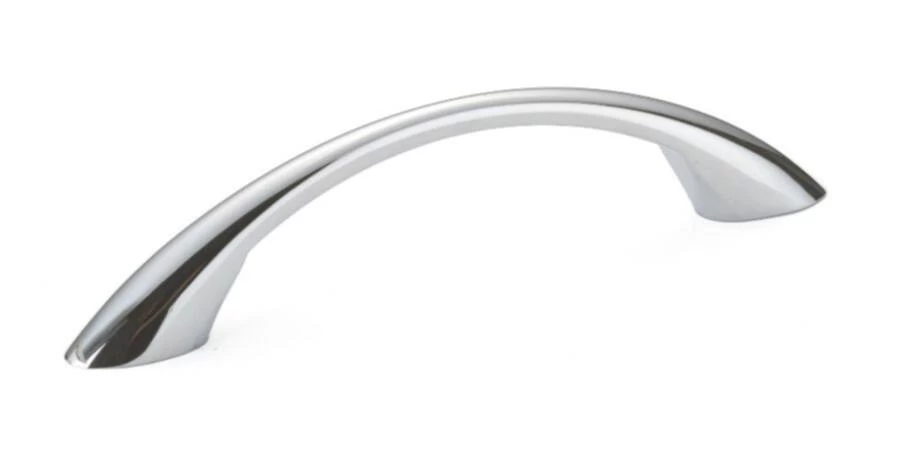 Contemporary metal bow pull with rounded ends by Richelieu. An elegant addition to cabinet doors and drawers.