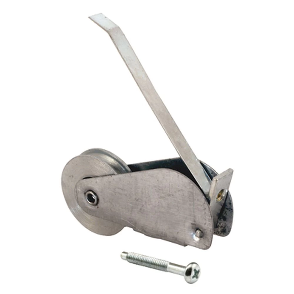 Spring Tension Roller Assembly 1-inch steel ball bearing wheel with center groove; steel housing; heat-treated, high tension steel spring; used as a top and bottom roller.