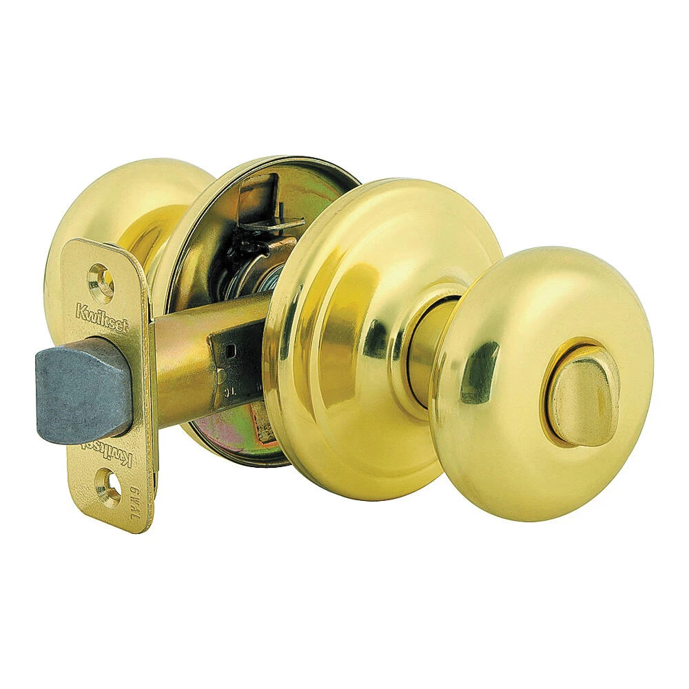 For bedroom and bathroom doors. Both knobs locked or unlocked by turnbutton inside. Outside knob unlocks by emergency key. Features titanium alloy throwbolt core, anti-pick 6 pin system and ultra-strike for jamb brace. DOOR PREP: 2-1/8 in Cross Bore, 1 in Edge Bore, 1 in x 2-1/4 in Latch Face. BACKSET: 2-3/8 in – 2-3/4 in adjustable. DOOR THICKNESS: 1-3/4 in doors standard. 2-1/4 in doors optional. CYLINDER: 6-pin removable core. 5-pin optional. FACEPLATE: 1 in x 2-1/4 in . STRIKE: 2-1/4 in full lip. BOLT: 1 in throw. Nickel plated. HANDING: Reversible for right or left hand doors. ANSI/BHMA: Grade 2.