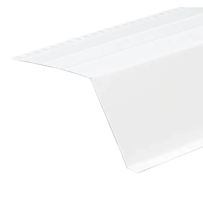 Protects and covers roof edge. Directs run-off into gutters. For new construction and reroofs. Used along gutter line of roof edge. Acts as a starter strip for a true edge to align shingles. The face, with its kickout at the bottom, diverts rain water from the facia board helping to eliminate rot. Standard gauge. 5/8 in overhang, throw out included in face size. 2-7/16 in X 10 ft – 1-1/2 in Face.